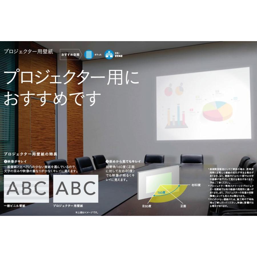 壁紙 プロジェクター用-プロユースの業務用壁紙を主力に、 機能性壁紙等のoem商品やオンデマンド印刷、 自社ブランド商品などを展開しています。 商品ラインナップ 住宅用壁紙、機能性壁紙、diy商品、 壁紙を使用したプロダクトなど、 多岐にわたるラインナップをご紹介します。プロジェクター用壁紙の特長 一般ビニル壁紙と比較して表面の凹凸が少なく、柄印刷を施してないので画像や文字の歪みが少なく、映像の再現性に優れています。 プロジェクターを使用する度にスクリーンを設置しなくてもすぐ投影可能です。 部屋全体